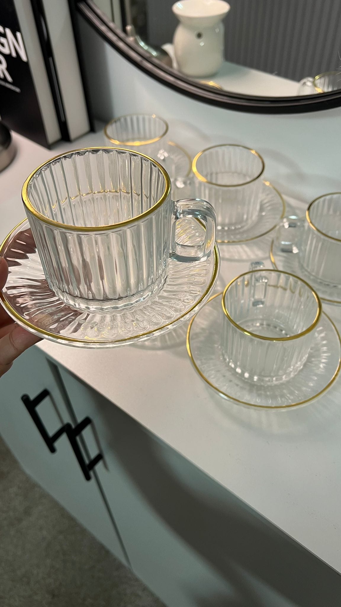 طقم شاي فاخر ثقيل بحز ذهبي